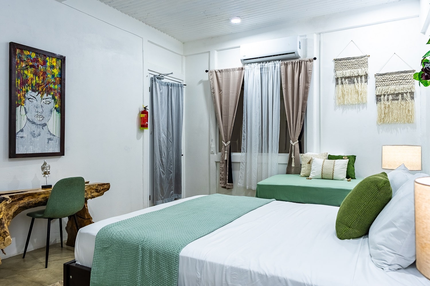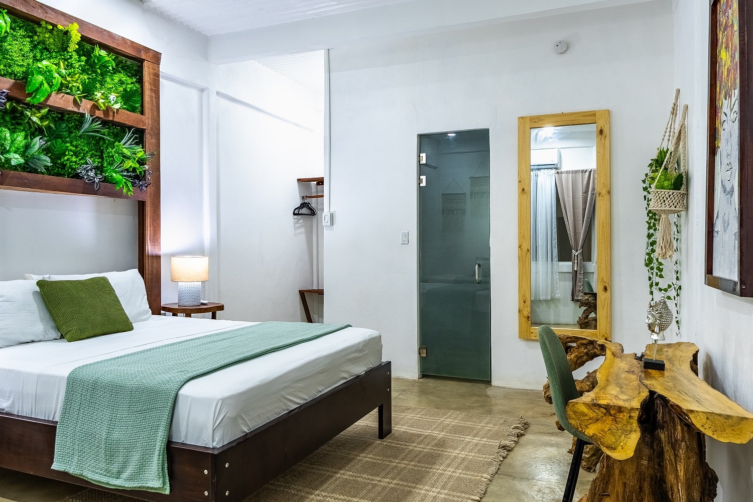 A spacious room equipped with one Queen size bed and one Twin bed gives you the comfort of sleeping 3-4 people and everything you need to live your dreams. If the twin bed isn’t needed it’s used for a comfortable seating area to relax after a long day. With our butterfly sanctuary right outside your window you can see nature all day while relaxing with luxury amenities including pillow top mattress, high-speed Internet, Air Conditioning, large stand-up shower and more.